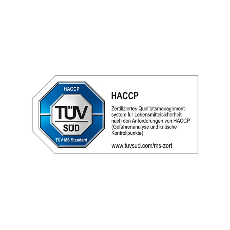 Hrana in prehranska dopolnila so izdelana v skladu s sistemom upravljanja HACCP, ki ga je certificiral TÜV Süd.